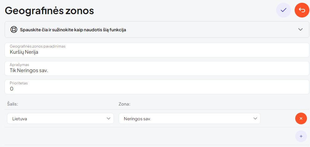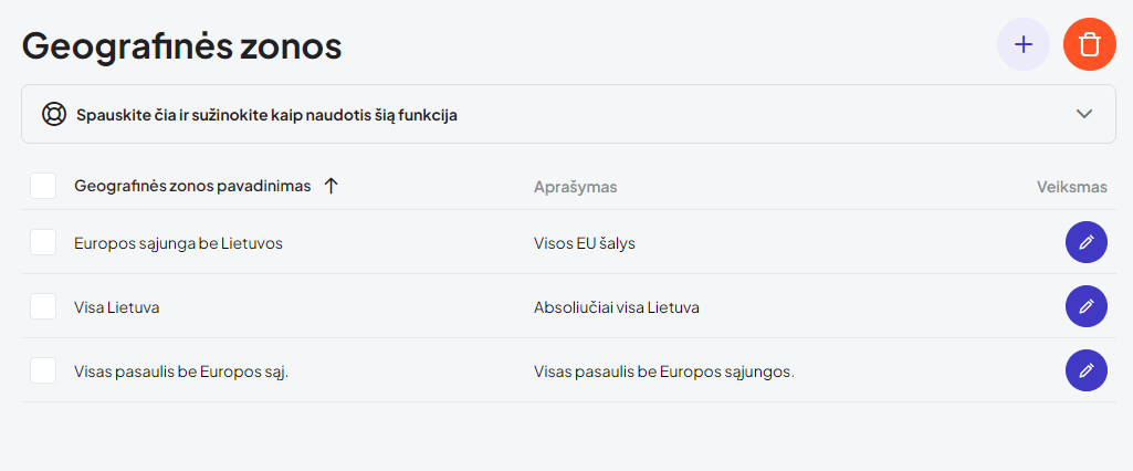 Geografinių zonas kurti, keisti ir pridėti galite Lokalizacija > Geografinės zonos