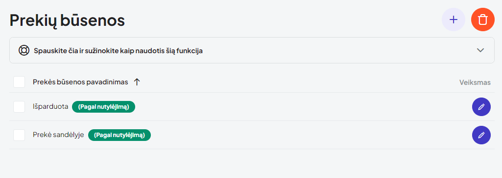Prekių būsenos leis tinkamai identifikuoti prekių likučius ir prieinamumą - galimybę įsigyti jūsų klientams.