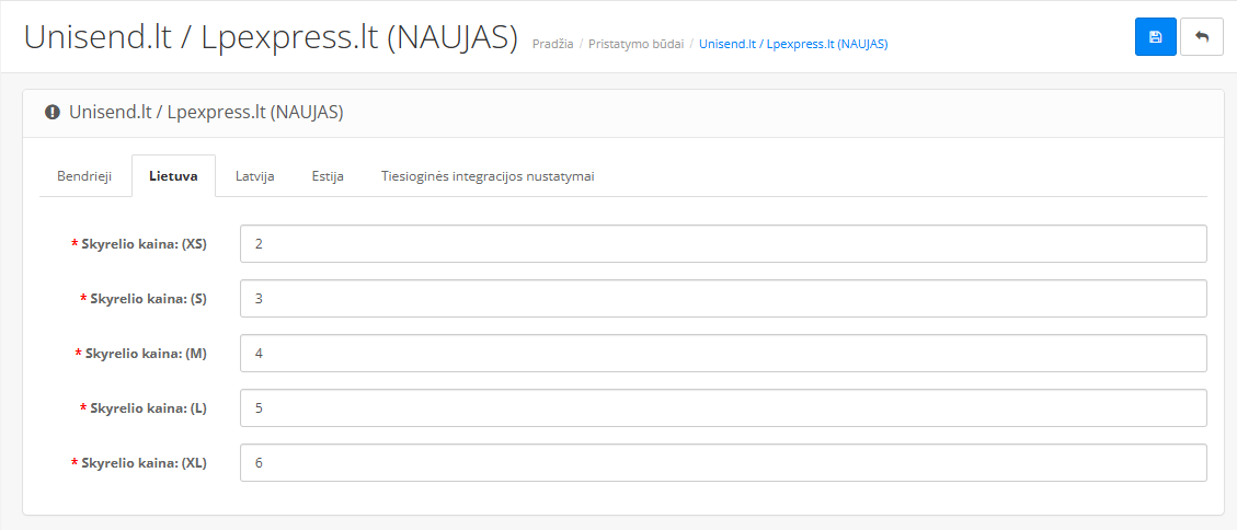 Kiekvienai šaliai galite parinkti norimas pristatymo paštomatais kainas, jei esate PVM mokėtojai veskite kainas be PVM. Norint naudotis tik viena šalimi, veskite tik jos kainas. Visi paštomatai klientams bus surenkami ir pateikiami automatiškai pagal kiekvieną šalį.