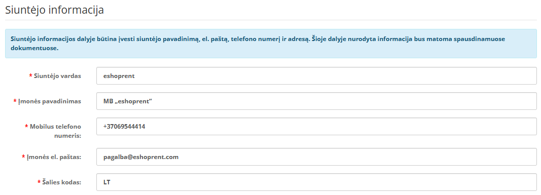 – Siuntėjo informacija